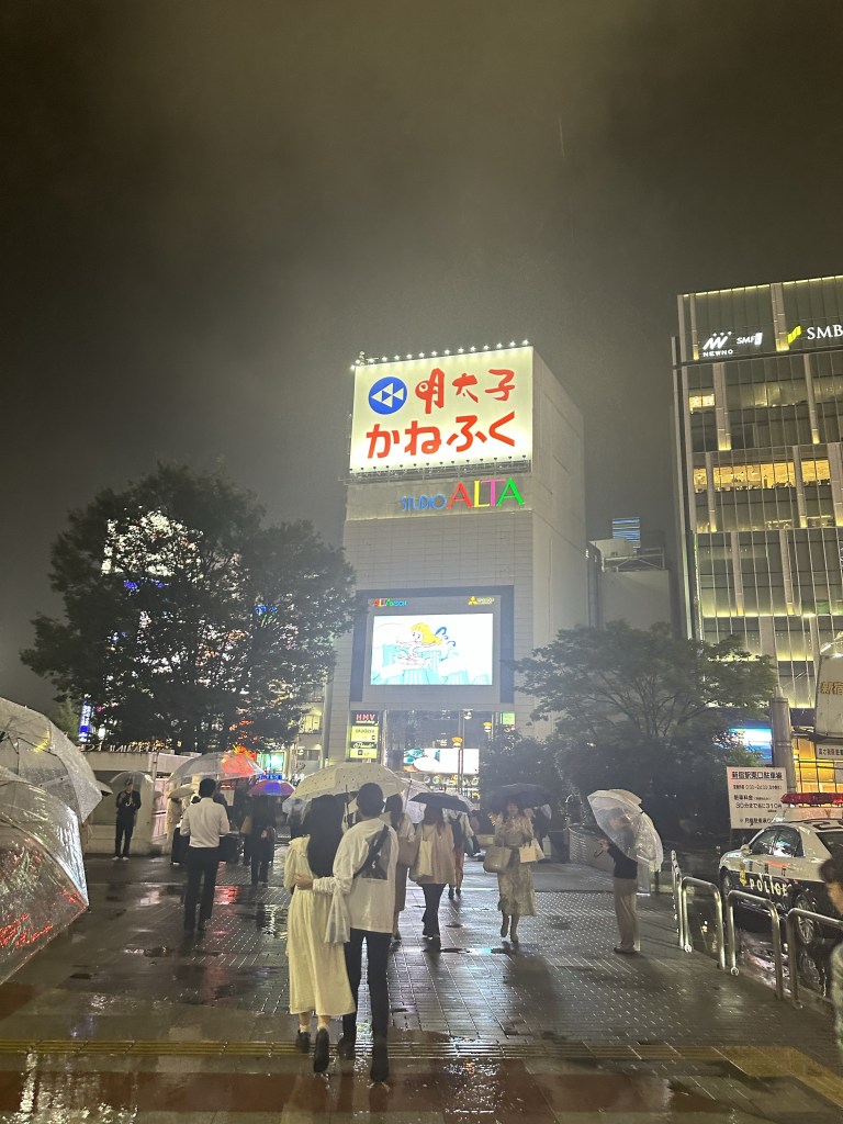 L’idea sarebbe stata quella di arrivare a Shinjuku, lasciare la valigia e fare un giro al Marui Annex dove ci sono alcuni dei miei negozi di abbigliamento preferiti, (sopratutto il Kera Shop) ma: avendo perso un pò di tempo in aeroporto mi rendo conto che sarei tirata e non amo guardare le cose belle di fretta per cui decido di andare in hotel con calma. Arrivati a Shinjuku ovviamente piove, ma non due goccine, bensì il diluvio universale, quindi acquisto un meraviglioso simili k-way mentre mi risuonano in testa le parole della mia amica “ricordati il k-way!!” Si certo… se me ne fossi ricordata certamente non avrebbe piovuto. Già che ci sono compro anche un caffè in lattina pensando che appena arrivata in stanza ne avrò bisogno.