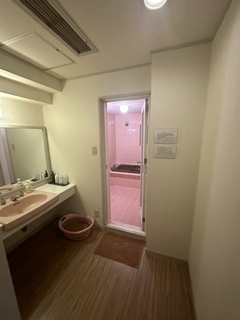 Prima di rientrare passo dal Family Markt, ho fame ma non ho voglia di fermarmi in giro, la doccia calda è ancora in cima alla lista dei desideri per cui compro giusto l’essenziale (acqua, caffè, milk tea, un onigiri bianco, un burrito vegetariano ed un budino) e rientro in hotel, questa volta per fermarmici.